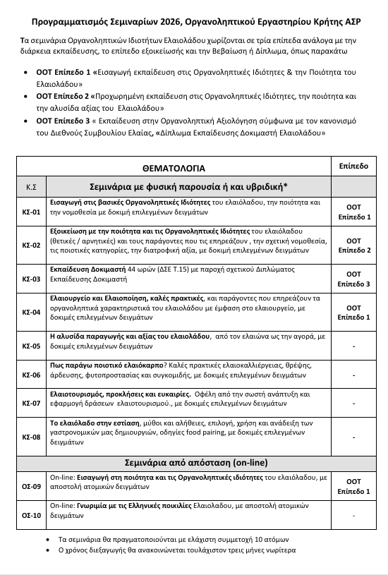 Προγραμματισμός Σεμιναρίων 2026 και εκδήλωση ενδιαφέροντος